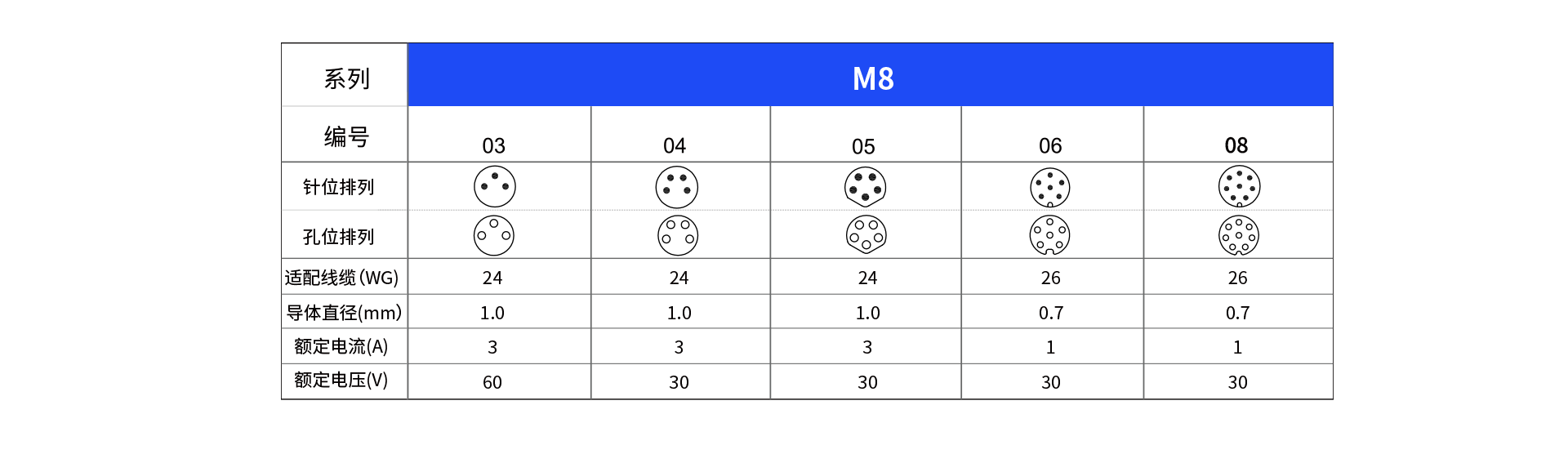 | 3-8芯 | 锁紧方式