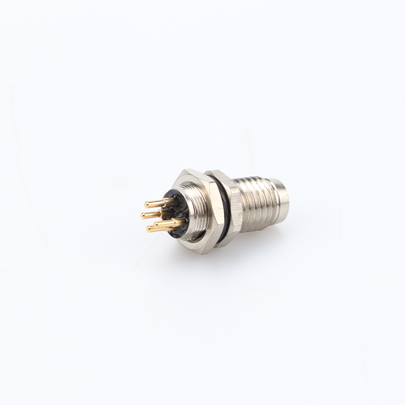 M8面板式法兰公头板后PCB金属口插座防水IP67