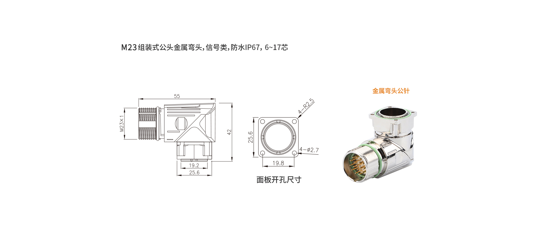 M23组装式公头金属弯头,信号类
